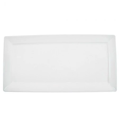 This sleek, thin CAC China F-RP41 Paris-French Rectangular Platter 14″ x 6″ is made from sturdy porcelain that is strong enough to last in the toughest commercial kitchens.