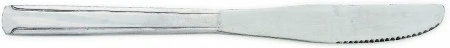 Set a simple yet classic table presentation with the Crestware DOM418 Dominion Medium Weight Dinner Knife. This piece of flatware boasts a serrated edge and teardrop-shaped handle for a well-balanced grip.