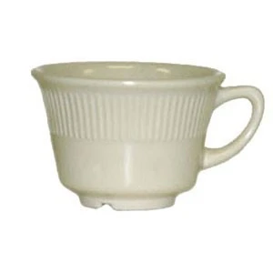 Use the GET Enterprises E-1-P Princeware Mug 7 oz. when serving coffee, tea, or any hot beverage. Designed with a classic ivory finish and detailed edge, this mug complements any d?cor.