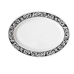 Whether used for entertaining or serving an everyday meal, the GET Enterprises OP-618-SO Soho Oval Platter 18″ x 13-1/2″ is an excellent dinnerware piece. This platter is beautifully accented with a black and white leaf pattern on its rim allowing it to easily coordinate with any table setting.