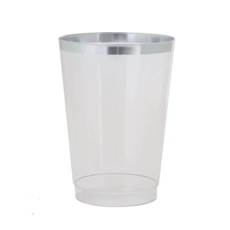 Product Details for TigerChef Clear Plastic Tumblers with Silver Trim 9 oz.