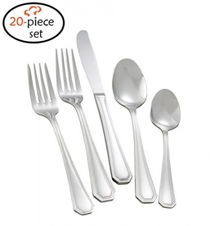 - Set includes 4 of each: dinner fork, salad fork, dinner spoon, dinner knife and teaspoon