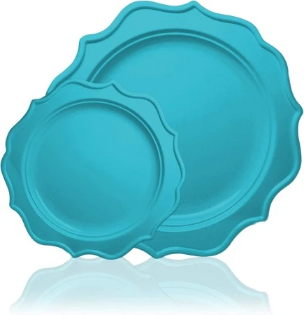 Product Details for TigerChef Turquoise Scalloped Rim Disposable Plate Set, Includes 10″ and 8″ Plates, Service for 48