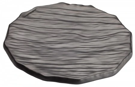 Use the Winco WDM019-301 Ardesia Kaori Black Melamine Round Platter 11-1/2″ Dia for serving freshly-baked bread or displaying hors d’oeuvres. Adding modern elegance to any table setting, this platter boasts an attractive cut-wood design with a striking black finish.